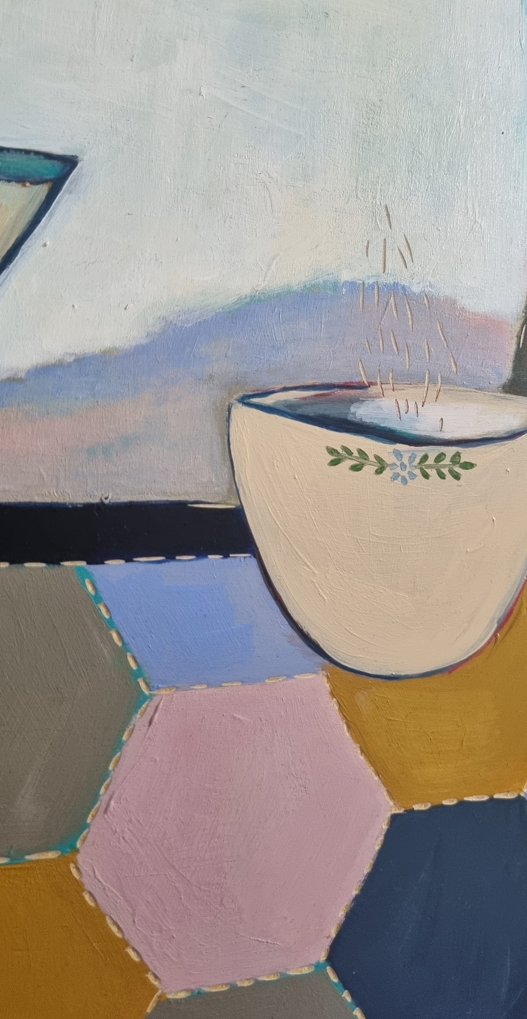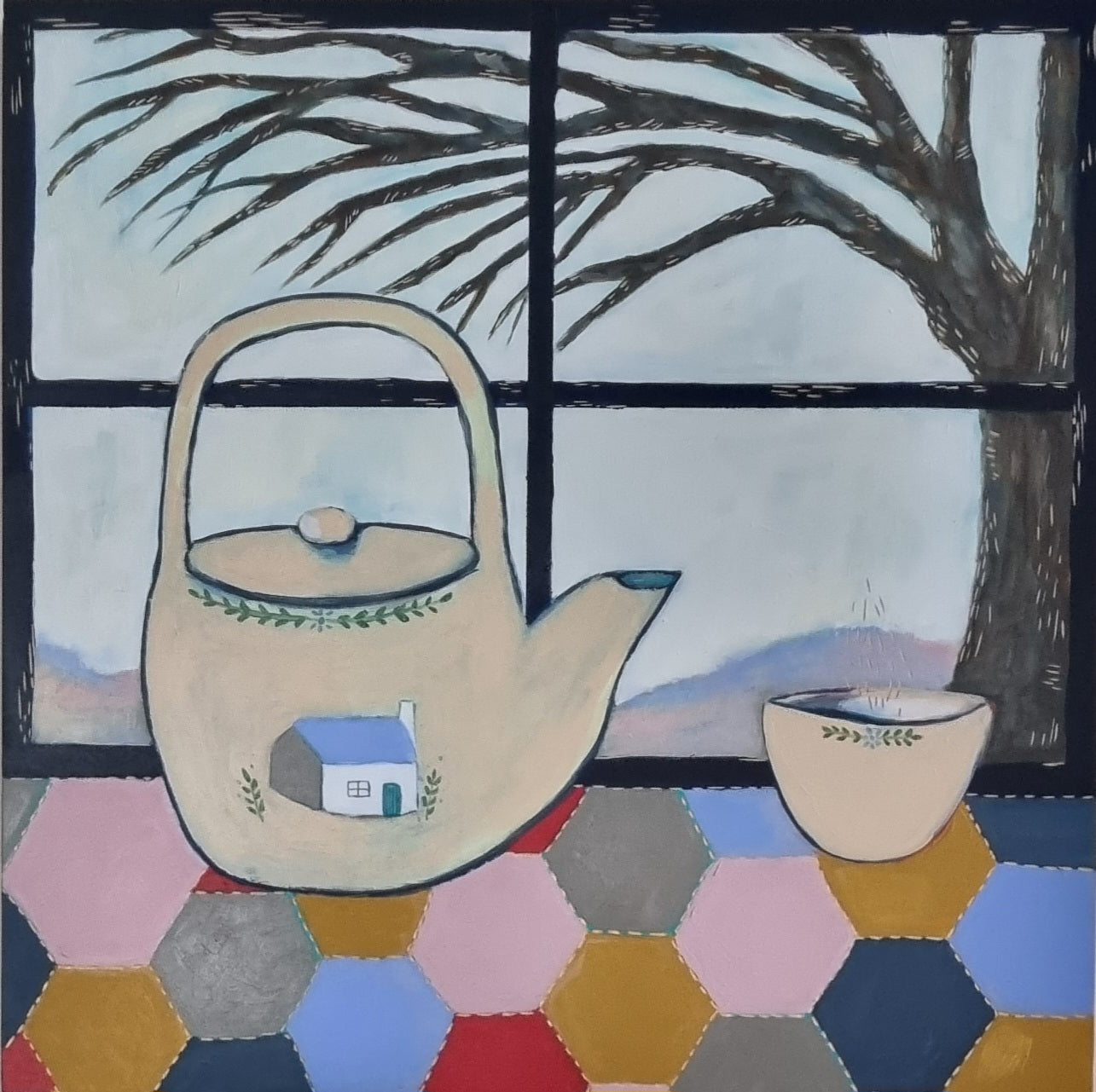 A little comfort is an acrylic painting on timber frame. It is a quaint scene of a window during winter with carved details directly into the timber. It is 40cm x 40cm in size with d-ring hanging system on back, signed, dated and ready to ship.
