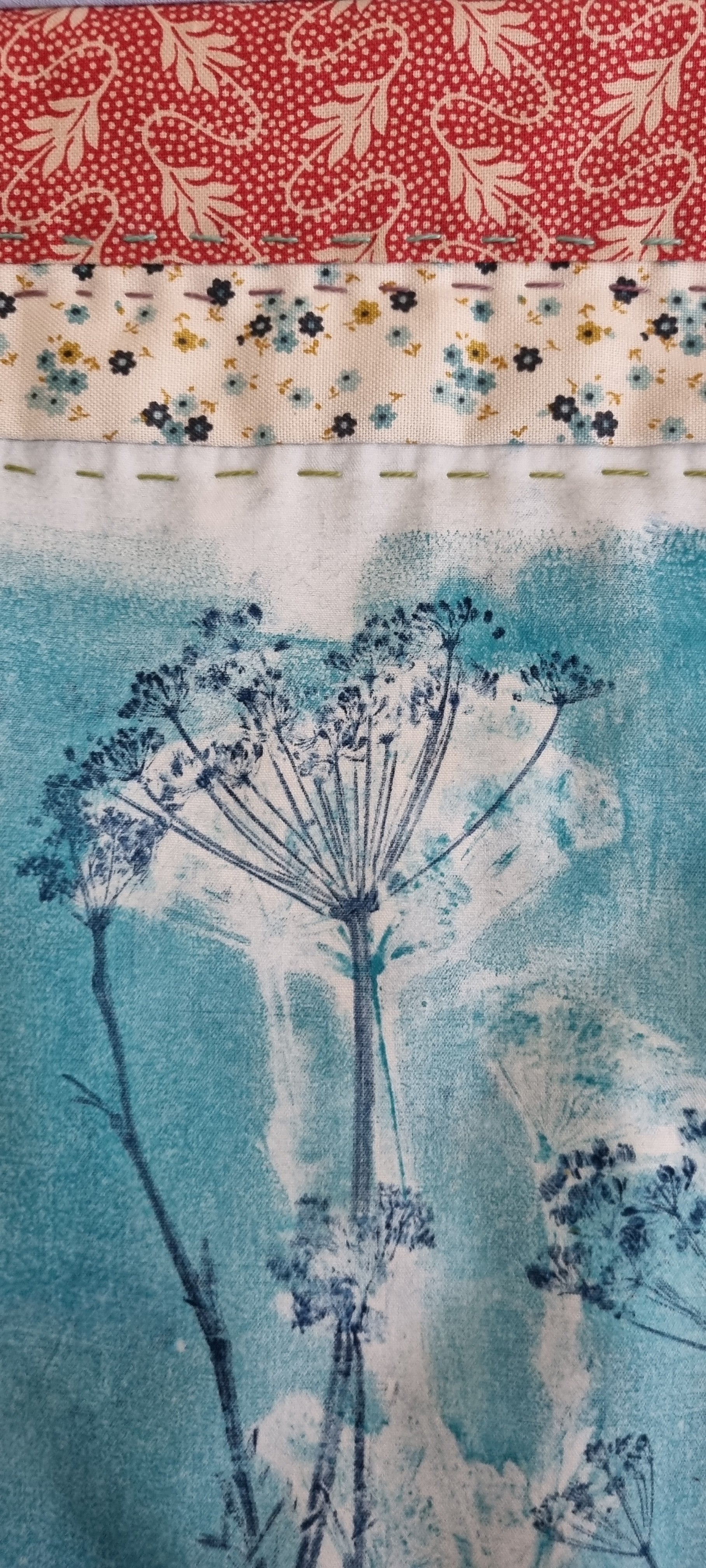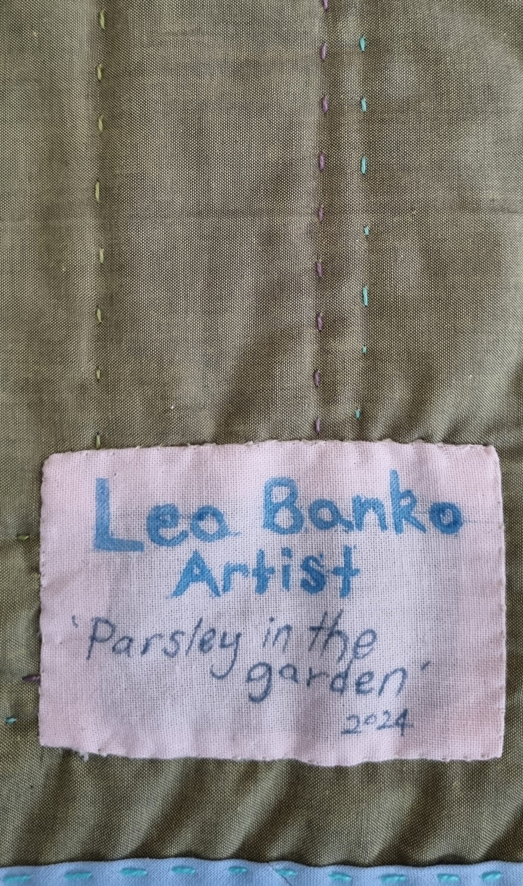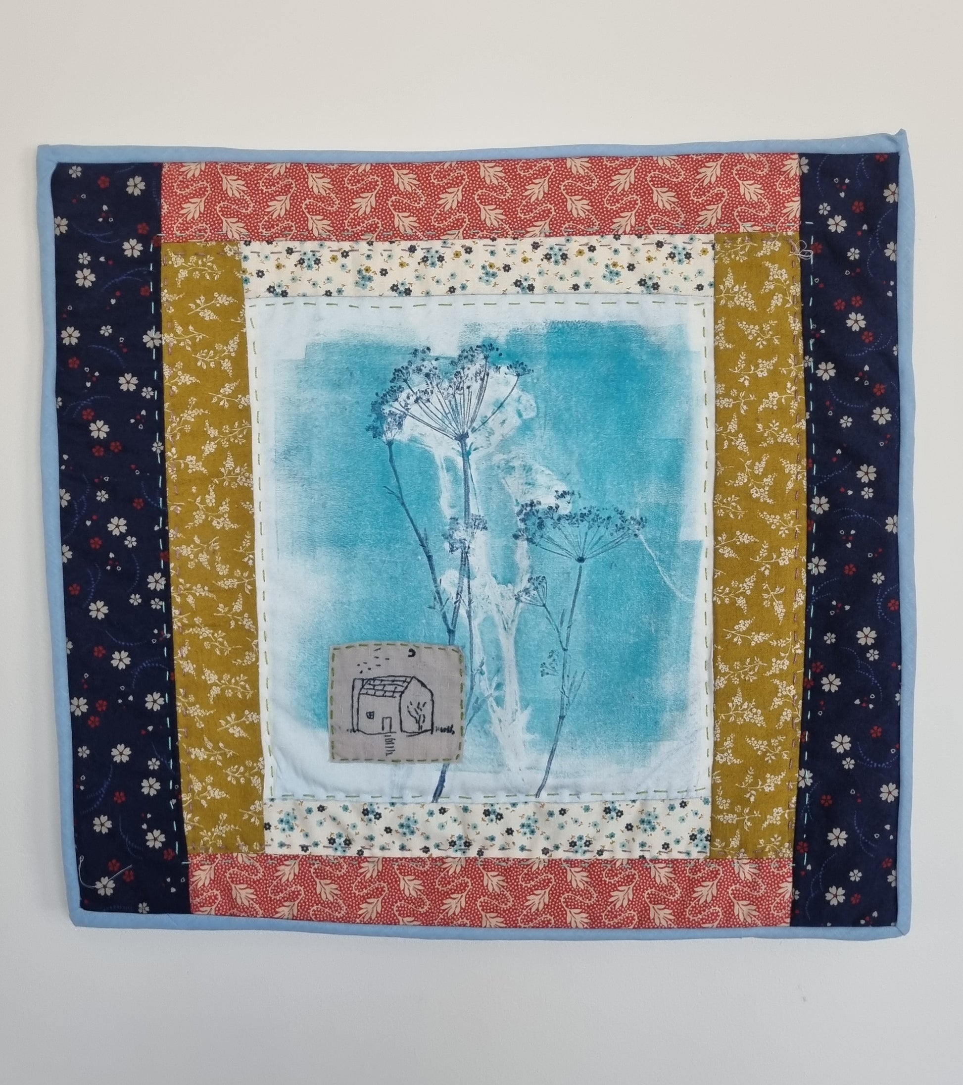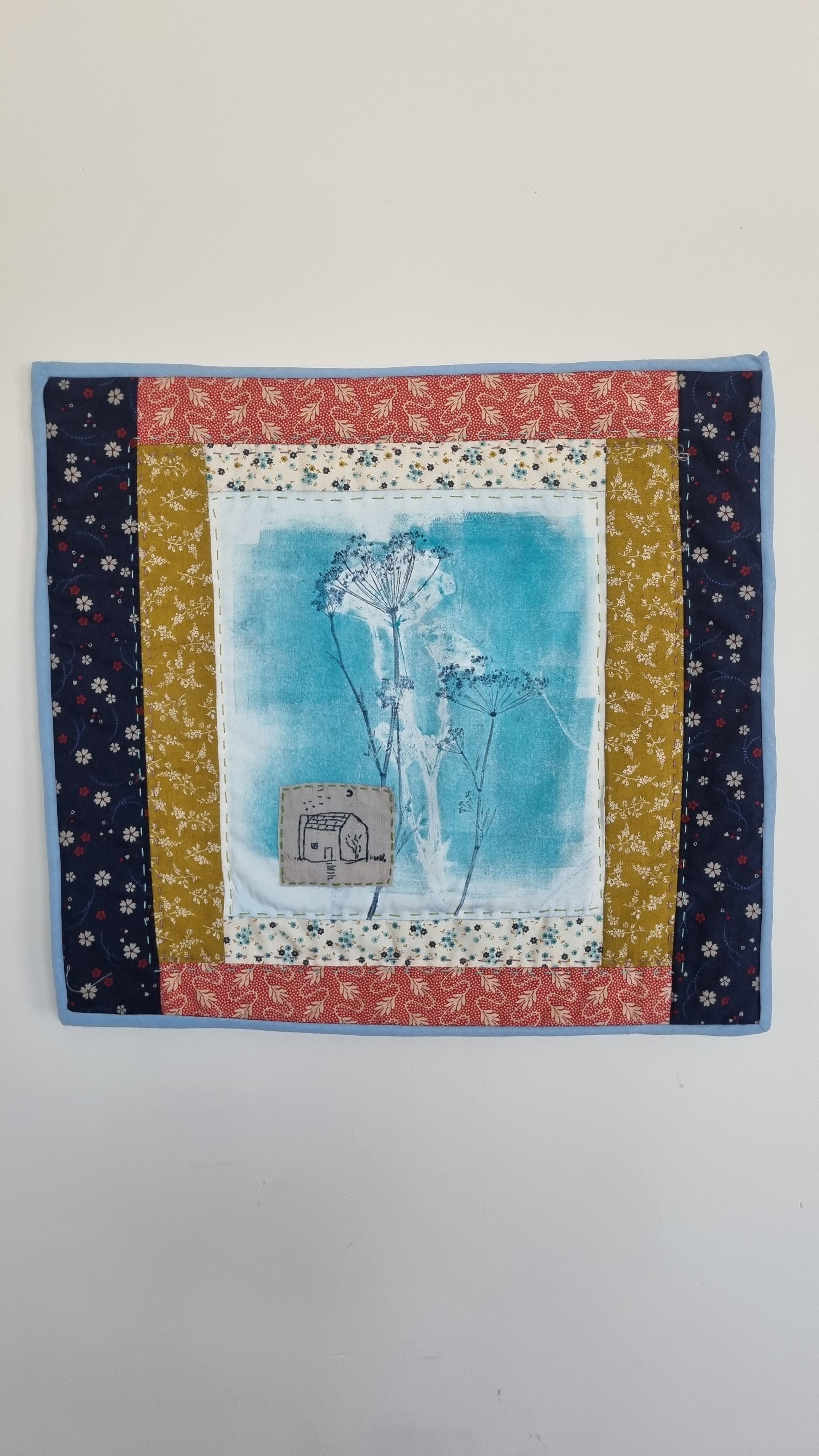 Parsley in the garden is a mixed media patchwork. I refer to these original wall hangings as Story cloth as no matter what rough I ideas I start with, there tends to be a story that emerges in the cloth on its own. This one is inspired by my parsley plant going to flower in my garden. I use them to create mono prints onto cotton with oil based inks through my printing press. I incorporate vintage and cotton fabric from my stash as well as hand embroidered details to complete this bordered quilt. It has a handmade timber hanger on the back ready to hang to your wall, Approx 37cm X 40cm in size. It will be sent via Australia Post.