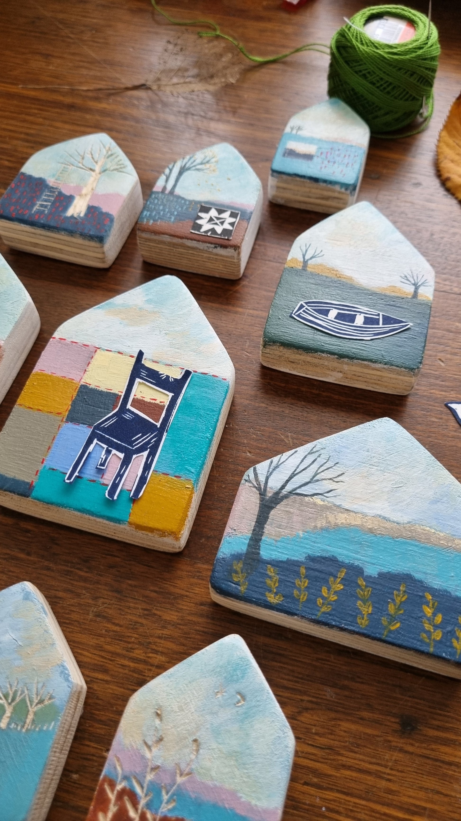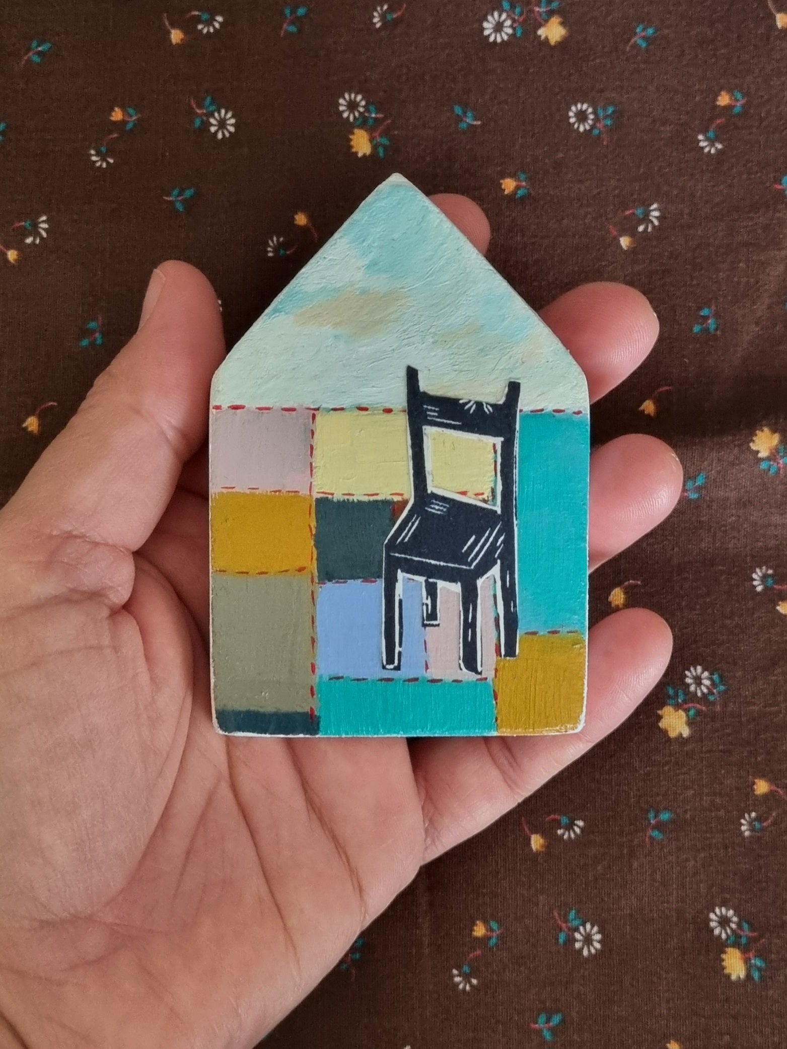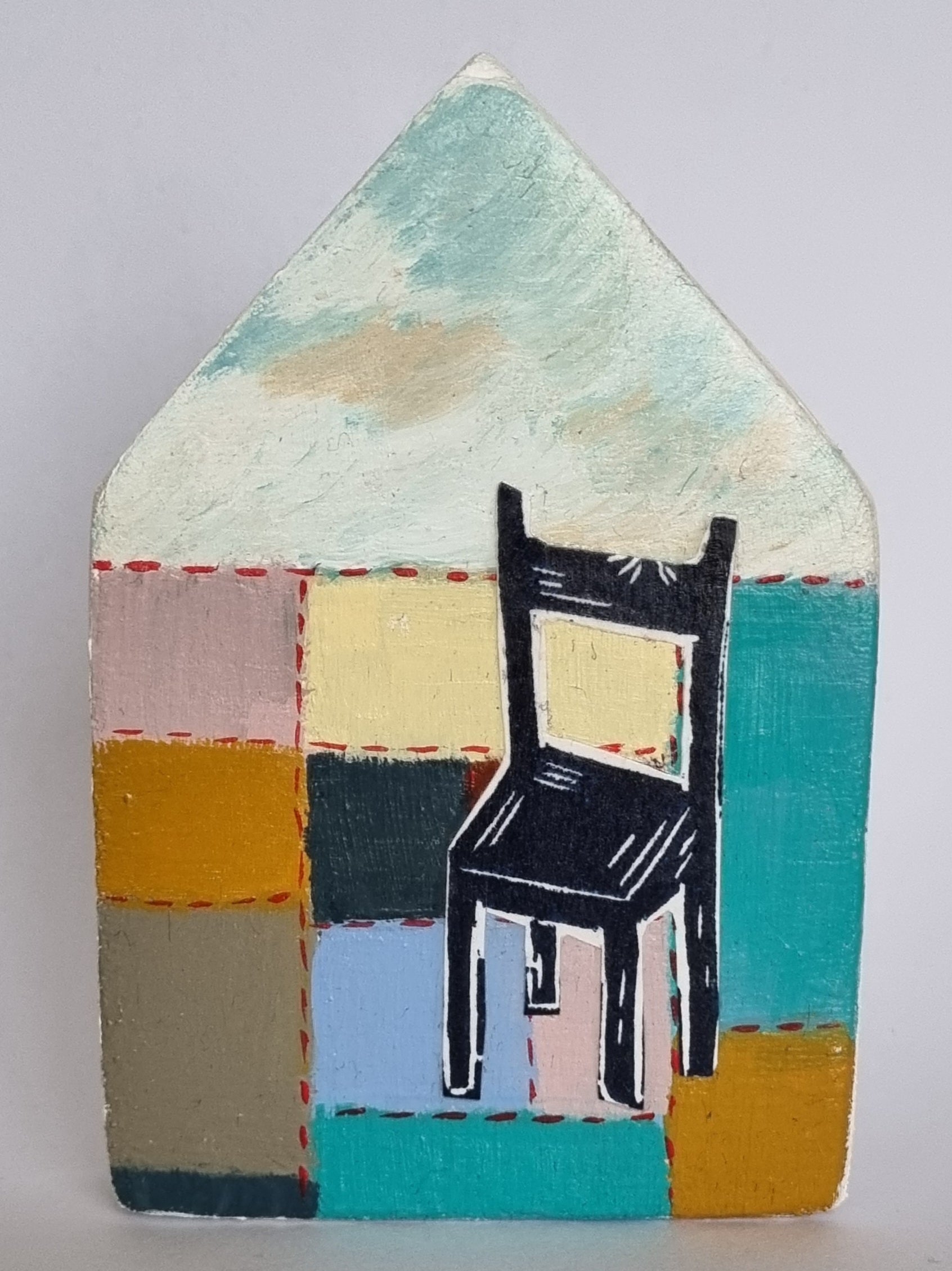 Tailors chair is a mixed media on timber sculpture. The reclaimed timber is cut and sanded by hand and painted with a rough idea in mind. The inspiration for this piece is from my grandfather who was a tailor. He had such an amazing workshop at his home where he would sew clothes for my nana and the family. It was a treasure trove of coloured threads, fabric, old sewing machines and him sitting in his chair. This piece is approx 6cm X 9cm in size and will be sent in a padded bag via Australia post.